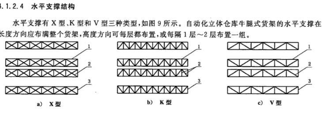 垂直支撐有X型剛性、X型柔性和Z型剛性三種類型,自動化立體倉庫牛腿式貨架的垂直支撐在長度方向應布滿整個貨架